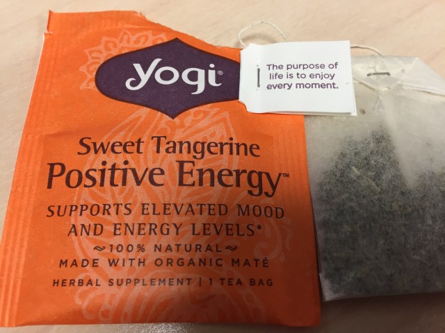 It’s the first Monday of the New Year. I still enjoyed my morning coffee at work, but I decided to mix it up with some tea. I found this tea called positive energy tea. Although I’m not sure if tea can make you feel more positive, it’s worth a shot. If nothing else, the citrus flavor goes well with the EmergenC that was added to it (due to 12 yr old having a bad cold that I don’t want to get).