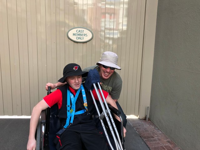 Who is steering your ship? Does Joy drive or does Disgust take over? Is Joy hidden when Anger takes over? Does Fear lead the show? Sometimes we need someone to help us get back on track. My husband tried to bring more Joy by pushing Myles in a wheelchair and doing wheelies. He also made noises and had him take a picture by the “Cast members only” sign – get it? Cast? Ha ha.
