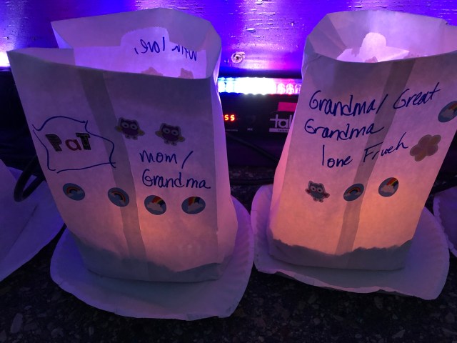 My mother-in-law had breast cancer shortly after we were married (more than 20 years ago.) A few years ago, she stopped going in for regular check ups. She stopped putting herself first. We aren’t sure why, and now we won’t get the chance to ask her. She was 70. She didn’t make it to her 71st birthday. She won’t see her grandkids graduate high school or get married. Last Friday we lit a luminaria bag in her memory at our Relay for Life event.