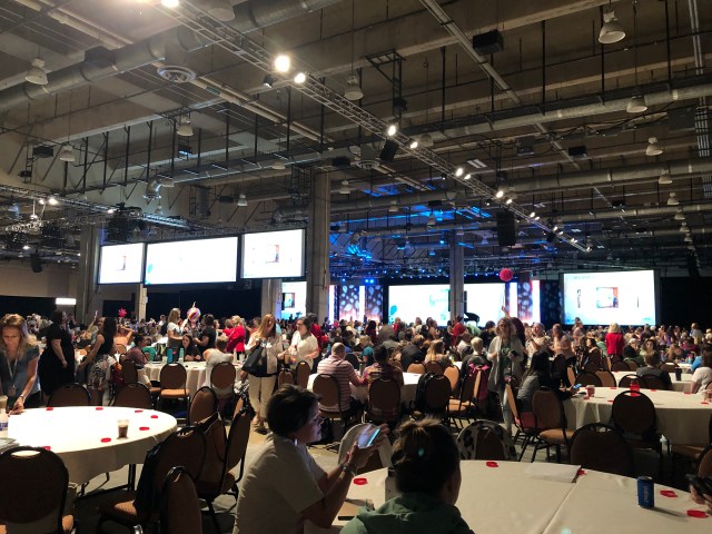 The rest of the day was fine. The guys had fun and came to pick me up so we could meet my aunt for supper. Saturday morning came and they dropped me off at the convention center so they could get started fishing. I went back upstairs, feeling confident… now I knew where I was going. I strolled into the main room and it took my breath away. Round tables…3,000 people (2,997 ladies and like 3 guys)… all sitting with their teams. I stood in the back for a bit, scanning for an open seat. Yesterday this was just rows of chairs, but they were prepping for the gala banquet & had it in round table configuration. I thought about going up to a table but then I just went into the lobby. I sat on a chair for a few minutes until I realized the presentation was on a TV in the lobby area. I sat there and watched what was going on, somewhat relieved to just blend in. A lady sat nearby…when another lady came over to talk about how crowded it was in there, I blurted out: “yeah, it’s not a good set up if you’re alone.” They both stopped and looked at me. “Wait, isn’t your team here?,” the one woman said. I replied (wishing I had just kept my mouth shut), “Um, no, I’m by myself.” She stopped and put her hand on my shoulder… “Wait, so you’re alone/alone?!” “Yes,” I said softly. She took me by the arm (not in a forceful way), and led me to the registration desk. “We are going to find your team.” They looked up my upline and found a person who was part of my group. “You’re going to be just fine, sweetie. You’re in good hands.”