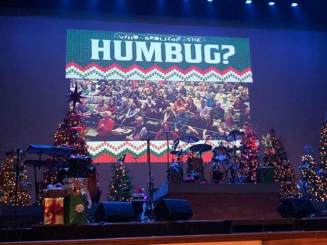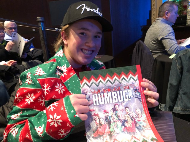 My youngest son and I went to a show in Minneapolis on Sunday. It was called “Who brought the humbug?” We had front row seats and he wore a Christmas suit. He certainly didn’t bring the humbug. It was me. (I’m actually in the picture on the screen)