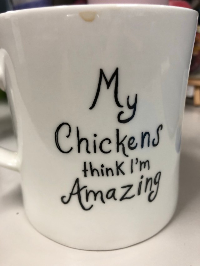 My sister gave me a plate that has this saying on it and a co-worker gave me the mug. “My chickens think I’m amazing.” I love it, it makes me smile. I think you’re amazing too. You have the ability to do great things. I wish you peace on your journey of enough. May 2020 be a great year for you.