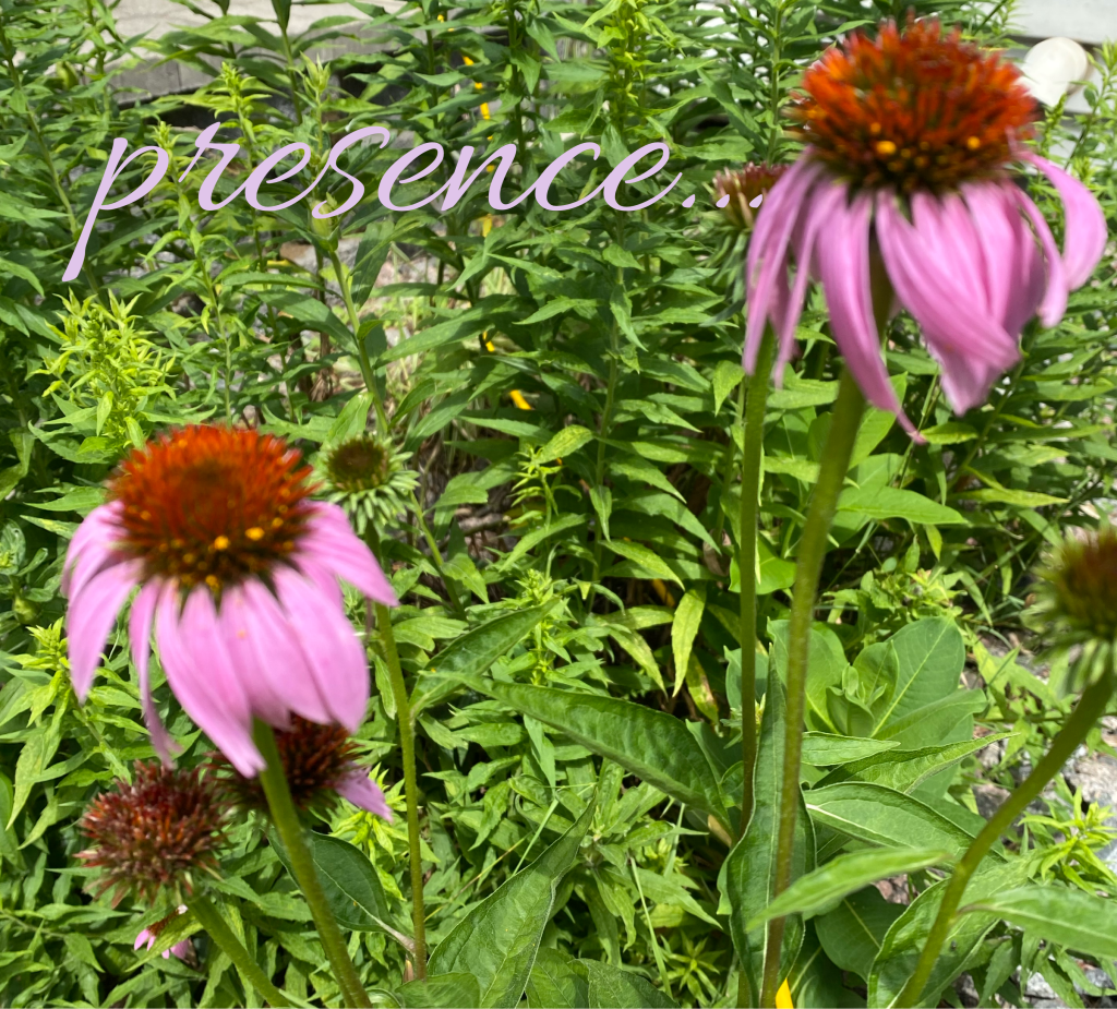 Presence… It’s what came to mind when I took a break and walked outside today. I didn’t stop and smell the roses, but I did take a picture of my flowers. I’ve been in a slump this week. So much so that I didn’t post on Tuesday- the first time in a while. I had a post started about freedom, one about word triggers and one about presence. The one about Presence completely deleted and could not be recovered. I still felt I needed to write about it, so here I am.