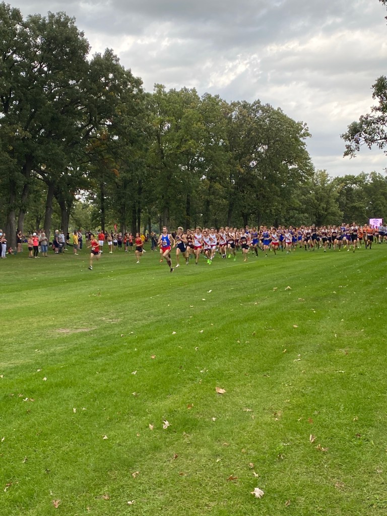 This is the beginning of a recent cross country race. It’s one of my favorite views. The race gun goes off and the kids start running. The long horizontal line funnels down while they jockey for their spot. They try to find their pace. Don’t go out too fast and burn out, but don’t save too much so you have too much left over at the end.
