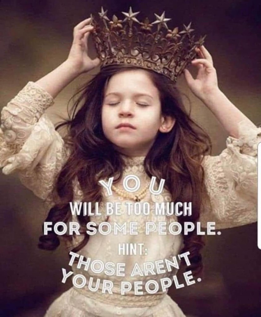 I saw this picture on Monday & instantly thought, “Yes! This is it!” While I often write about not being enough, there have been plenty of times when I’ve been considered “too much.” Too dramatic, too emotional, too obsessed, too hard, too soft, too opinionated, too heavy, too introverted, too quiet, too eccentric, too stubborn… While it’s easy to say “those aren’t your people,” sometimes that is hard to accept. Those people may be your friends or relatives, your co-workers or even yourself. What?! Me?! I’m too much for me?!