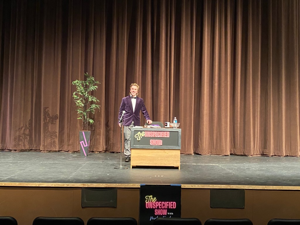 He wrote the jokes, planned the games, found the trivia, got the cast/crew he needed, promoted the event, ordered merchandise and more. To say I’m proud is an understatement. The show flowed smoothly. He even did a live call to wish his grandma a happy birthday. He modified “My Way,” and sang a finale song. He was hoping for a larger audience, but those who showed up had a good time. Some people in the audience were loud towards the end of the show, but kept his composure.