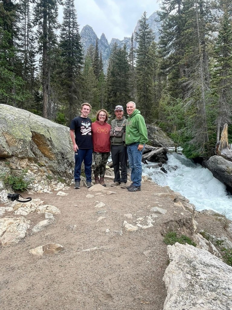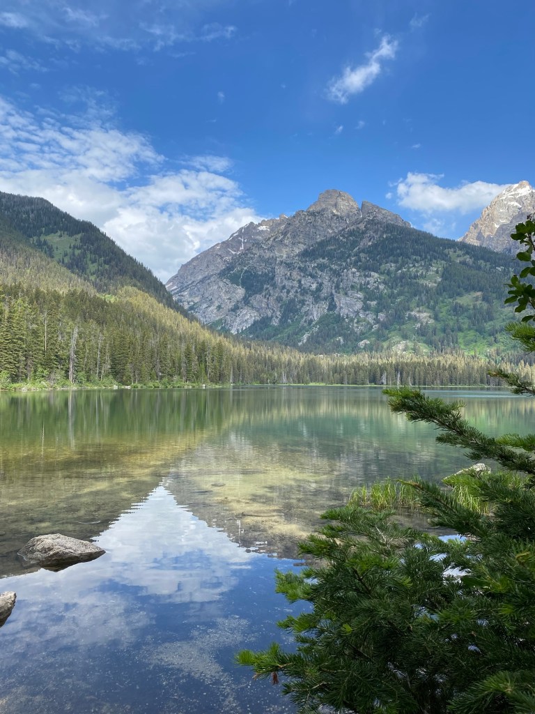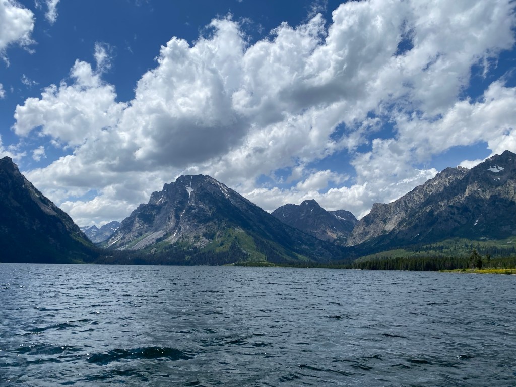 While we were there, I talked to Dallas who was telling me about his upcoming 4th of July weekend in the Tetons. I said that sounded like fun and we should go sometime. It’s about 6 hrs from Bozeman. He called me back later & said, “Why don’t you come this weekend? We have a camper you can stay in and I’m bringing my boat.” If you know me, you know my answer was a quick “yes!” So we skipped the big Farmer’s Market on 4th of July weekend and drove to WY instead. It was a long drive so we broke it up into 2 sections. The guys fly fished the Snake river, we hiked, went across Jenny Lake, rode on the boat on Jackson Lake, got caught in a downpour, went to an island, saw moose and deer & generally just disconnected. It was a great trip and they caught quite a bit of lake trout.
