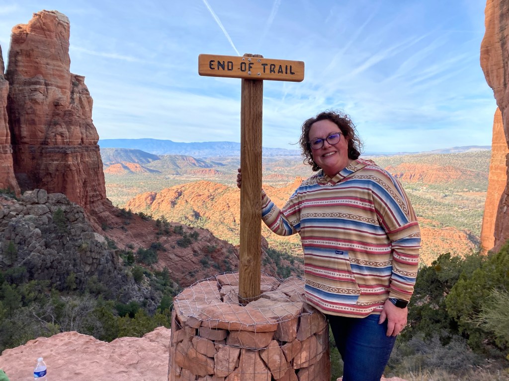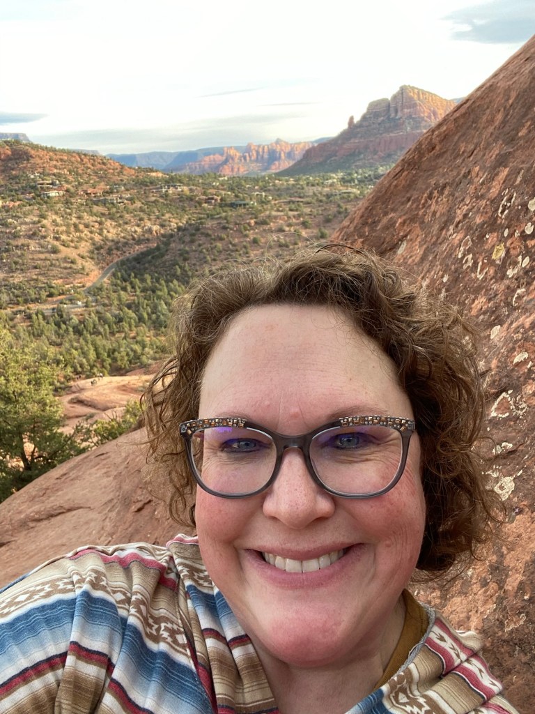 I’m still struggling to get back to regular writing. Earlier this year, we went to AZ to visit relatives. We also did some hiking. I took this picture after I climbed a section of Chapel Rock that I was convinced I couldn’t do. “Healing in Progress” seems fitting.