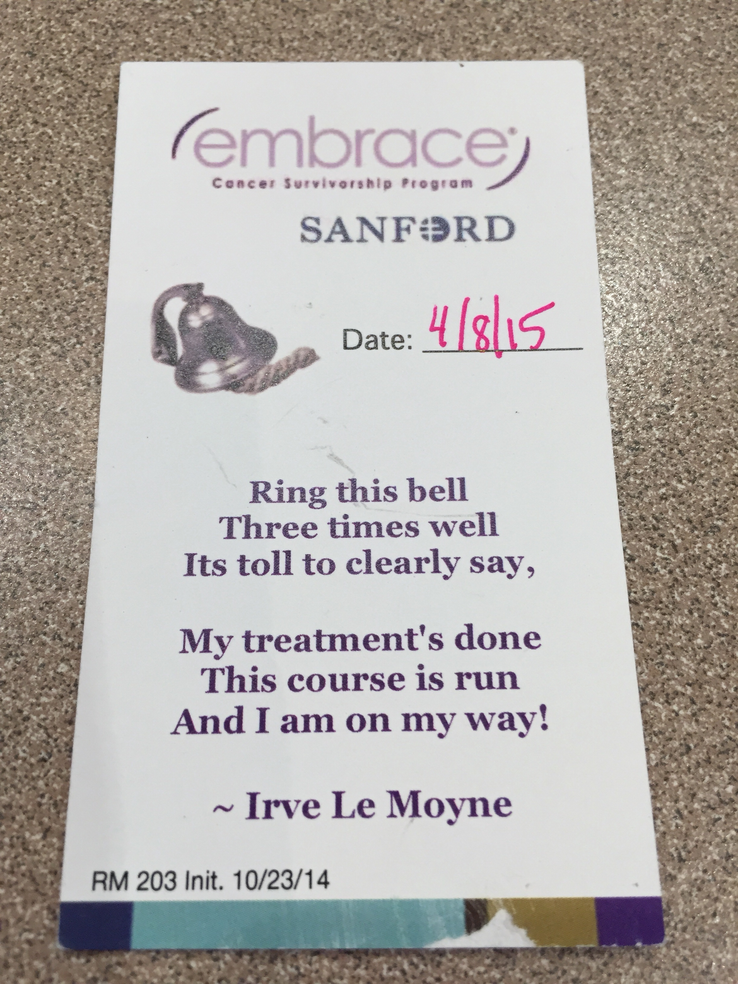 Some people will ignore this as “just another cancer anniversary post, but it’s more than that. 3 years ago today, I rang the bell as a cancer survivor. I still carry the card with me from the cancer center: